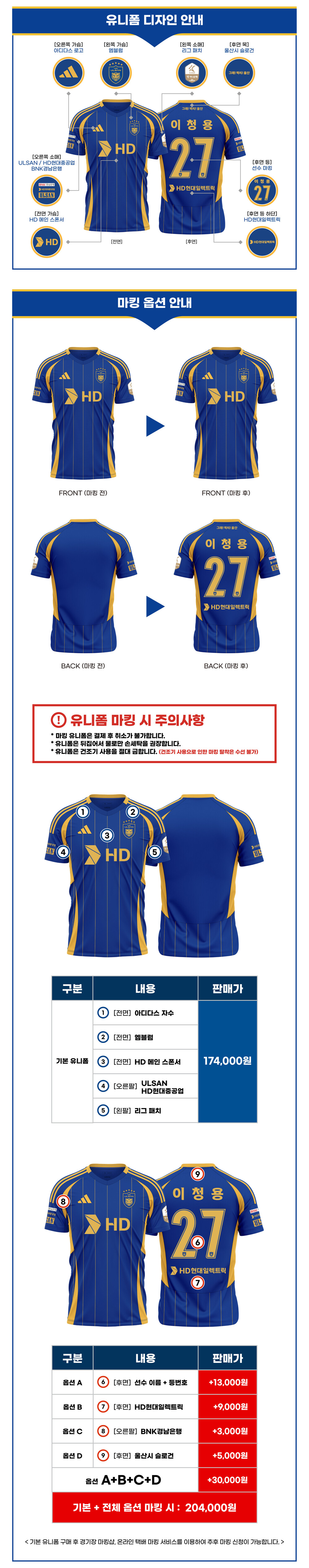 *2벌 이상 구매 시 '배송 메시지'에 구매하시는 유니폼별 마킹매칭정보를 자세히 기입해주시기 바랍니다.
