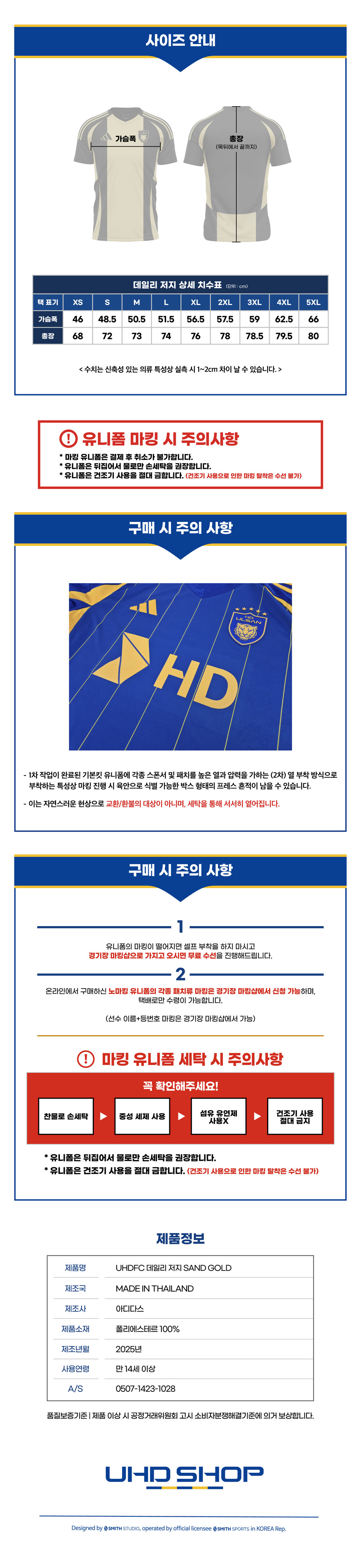 *1차 작업이 완료된 기본킷 유니폼에 각종 스폰서 및 패치를 높은 열과 압력을 가하는 (2차)열부착 방식으로 부착하는 특성상 마킹 진행 시 육안으로 식별 가능한 박스형태의 프레스 흔적이 남을 수 있습니다. 이는 자연스러운 현상으로 교환/환불의 대상이 아니며, 세탁을 통해 서서히 옅어집니다.