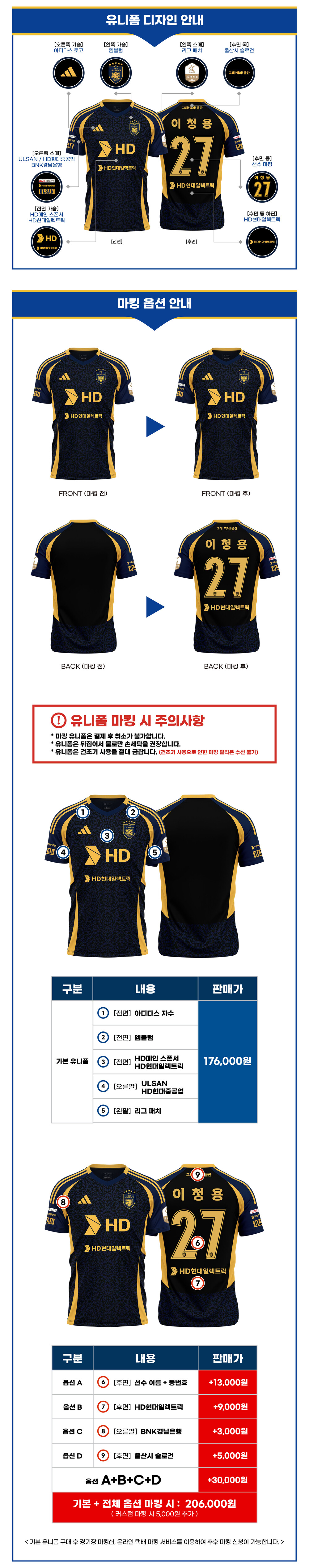 *2벌 이상 구매 시 '배송 메시지'에 구매하시는 유니폼별 마킹매칭정보를 자세히 기입해주시기 바랍니다.