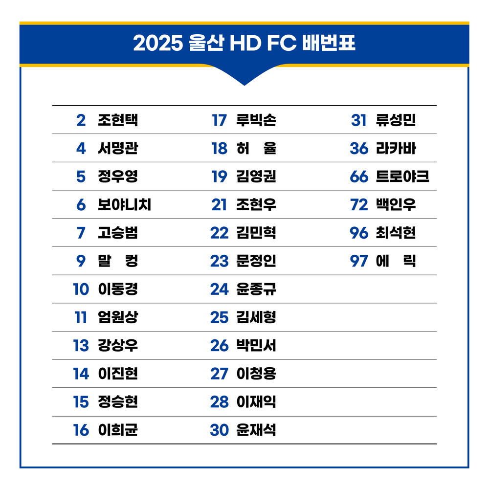 5월 24일 김천전 경기장 현장, 5월 25일 UHD SHOP 울산 업스퀘어 지점에서도 2025 HD현대일렉트릭 브랜드데이 유니폼을 구매하실 수 있습니다.