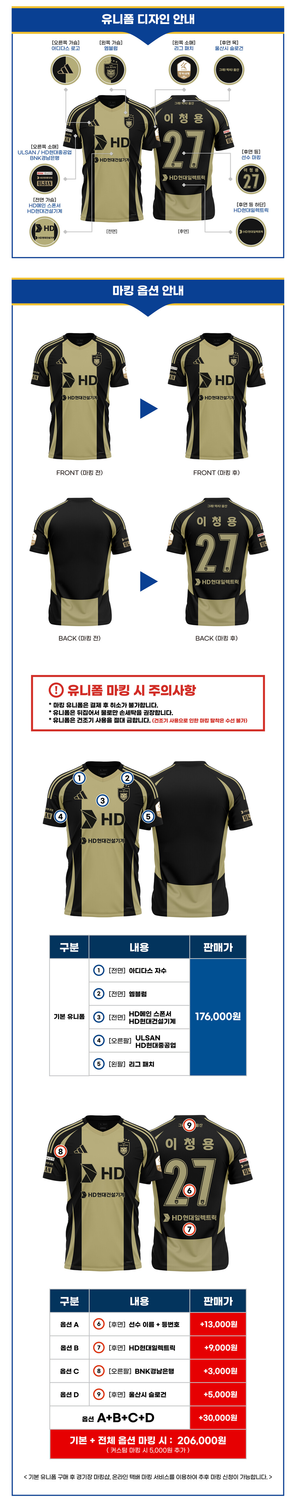 *본 유니폼에 추가 마킹 옵션 부착을 신청하시는 경우 25년 8월 1일부터 순차적으로 출고될 예정입니다.