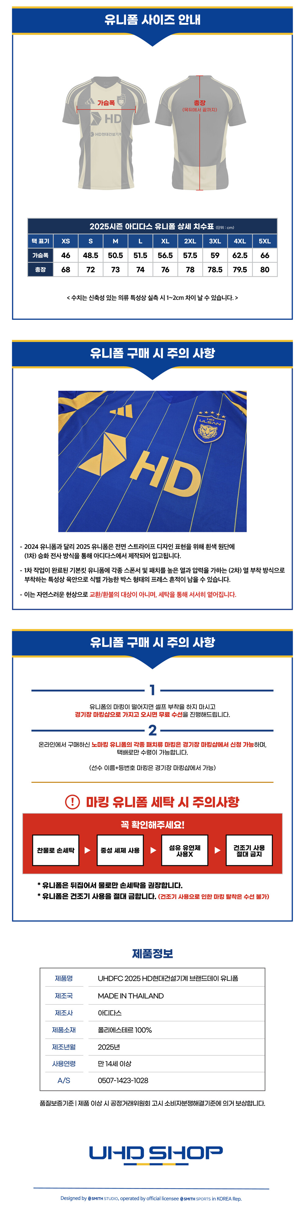 7월 23일 대전전 경기장 현장, 7월 24일 UHD SHOP 울산 업스퀘어 지점에서도 2025 HD현대건설기계 브랜드데이 유니폼을 구매하실 수 있습니다.
